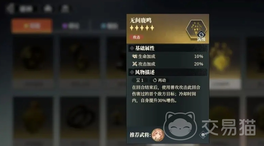 无闾鹿鸥也是个不容小觑的风物,它能带来10%的生命加成以及20%的攻击加成,让武将的生存能力和输出能力都得到一定的保障,它还可以在回合结束后,使用普攻攻击此回合伤害过的首个敌方目标,这就像是在常规攻击之外,又多了一个额外的输出机会,而且在冷却时间内,自身还能提升30%的增伤。