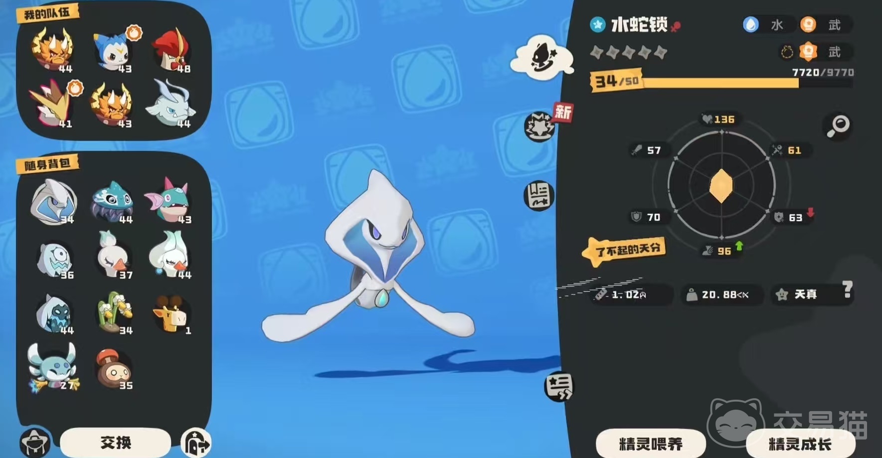 在特性方面,游蛇魔使具有思维之盾,触发抵抗时,下回合技能能量消耗降低5点。在自身资质方面,总资质609,生命90,物攻98,魔攻92,物防112,魔防112,速度105,非常均衡的资质。性格选择方面推荐加物防减物攻,大胆的性格就是最佳的选择。选择了这一性格,那么在输出技能方面,当然就是要以魔攻为主。