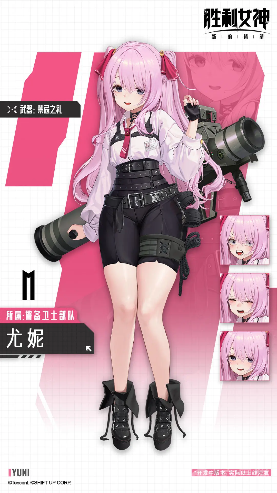 她是一名水冷属性的SR防御角色,和尤妮是同伴,面容清秀的御姐型角色。普通攻击“步枪”,对敌人造成攻击力15.07%的损伤,核心伤害达到200%。被动1“忍耐”,当最后的子弹命中,她自己的暴击伤害会持续10秒增强8.18%。