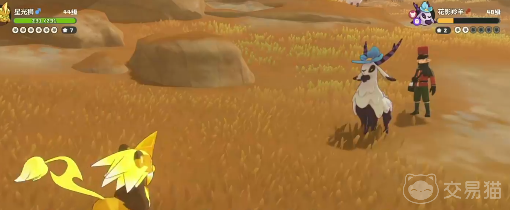 接下来就是第二场战斗,他派出的精灵是一只花影羚羊,花影羚羊是恶加幽灵属性的,虽然是拥有两种属性的精灵,但对电光狮是没有什么克制关系的,我们可以不用切换精灵正常攻击。