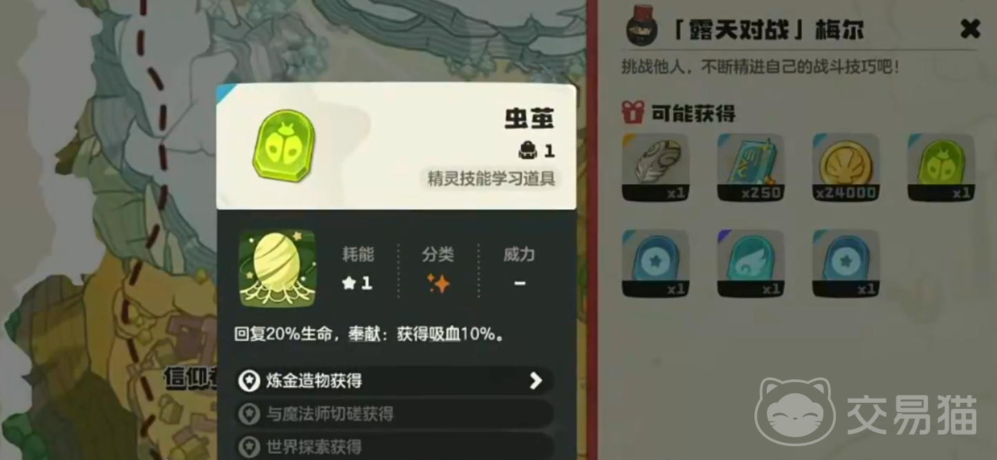所以电光狮对其没有什么克制作用,建议大家此时切换其他的带有电系技的精灵,就可以顺利赢得战斗,梅尔会掉落珍稀货币智慧羽毛、250的魔法经验、20400的洛克贝、一级的虫系技虫茧等物品。