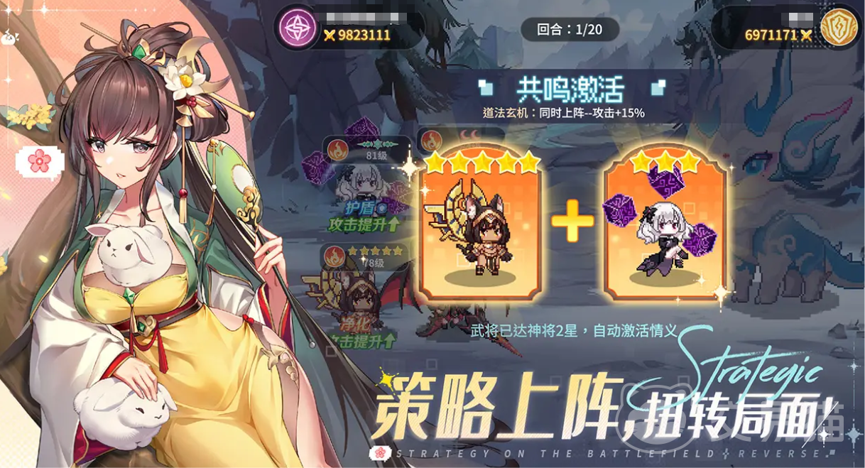 其实不同的角色之间也存在着一定的羁绊效果,大家也可以利用好共鸣效果去组合阵容,以此造成出其不意的效果。这时可以利用共鸣激活额外的战斗属性,不过武将还需要升到二星,所以这样对资源匮乏的玩家来说,即可随心搭配好用的阵容了。