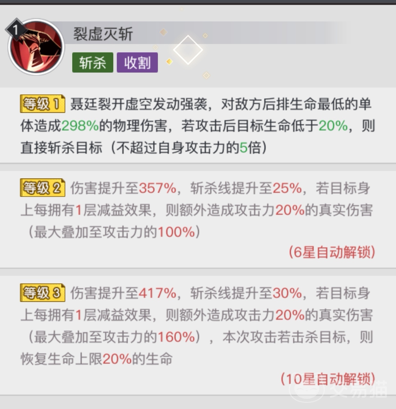 聂廷的基础技能战意无双,通过多次叠加战意效果,快速提升聂廷的杀伤力,对目标造成巨额伤害,尤其在敌方残血时能精准收割,是前期补足伤害的重要手段。核心输出技能裂虚灭斩,常用于针对敌方后排的脆皮输出角色,例如黑白小飞或时江,通过快速削减其血量打乱敌方节奏。生存方面,第一天罗能增加聂廷的生命值、攻击力和暴击率,让角色能在战场上存活更长时间。