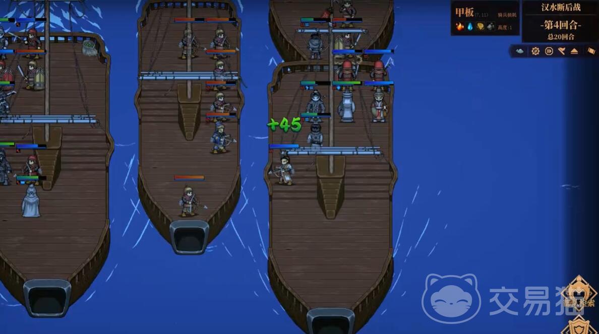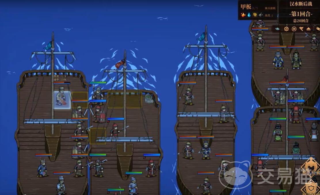 位置布置大家可以参考:前甲板:张飞(转职重骑兵)携带玄铁盾(格挡+22%)驻守,利用咆哮降低敌军攻击力,并触发反击链延缓盾兵推进。中间:简雍专职控场,对火油罐单位释放泥沼术(移动-3),并优先冻结张郃所在区域中断铁索机制。