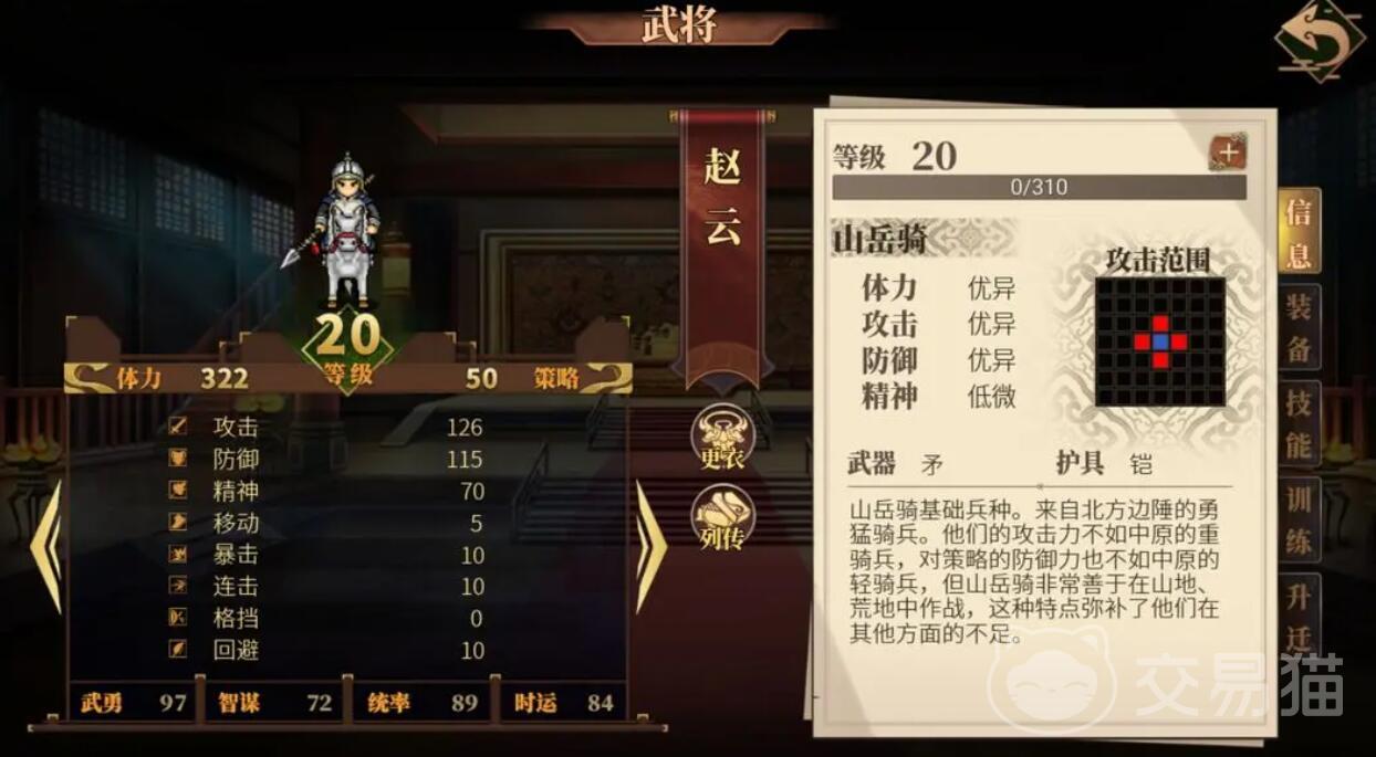 勇武的实战效益需通过装备词条与地形机制放大。赵云转职山地骑兵后,勇武90点可激活奋战攻击特性(攻击范围内随机追加一名敌人),配合涯角枪的破格挡+20%词条,在密林地形(闪避+15%)中可实现多目标的溅射输出。对于吕布等高爆发角色,勇武100点以上可解锁高速移动范围快速切入敌方后排,避免其叠加复仇。