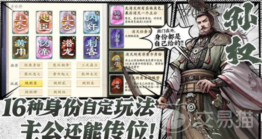 玩家之所以对该游戏比较喜欢,因为玩家在体验游戏时成为了历史名人,通过卡牌对战,身份推理,利用策略进行博弈等等需求。游戏里面有16种身份,各个身份之间是比较复杂的,毕竟有些身份是互斥的,也有一些身份是相互依赖的,玩家选择了具体身份之后,也需要了解专属的技能,并且要根据身份来制定策略。