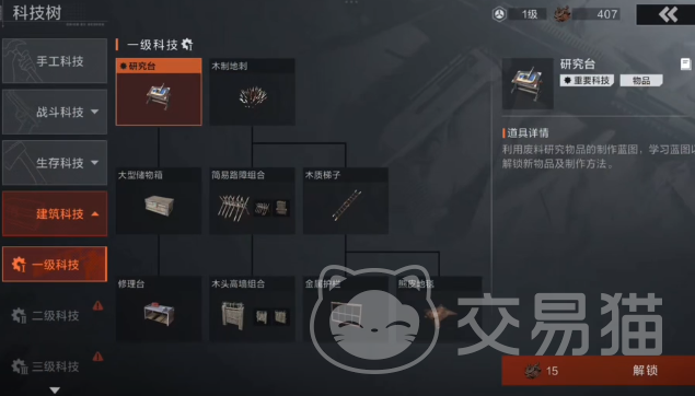 在科技树发展的过程中,二级科技以及三级科技中就会包含一些比较重要的武器,包括炸弹,还有手雷。这些武器对于玩家的战斗能力还有生存的提升,也会有较大的帮助。通过分解零件就可以迅速的获取废料,玩家可以更快的积累所需要的资源。