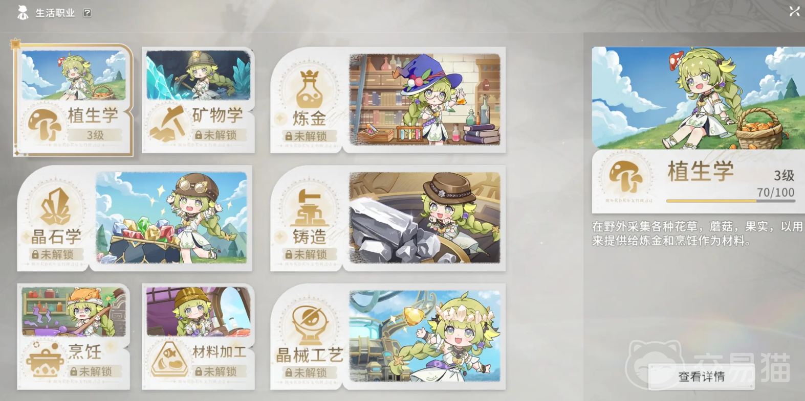 在游戏之中,生活职业分为多种,其中不仅包含有炼金、铸造、晶械工艺等等,玩家也可以在游戏当中,提升自己的矿物学以及植生学,从而变相地提高烹饪的能力。