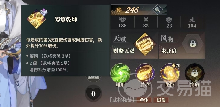 突破之后每达成第3 次直接伤害或间接伤害,都能额外获得最多100%的增伤效果,这一独特的机制使得丁夏在辅助的同时,还能提升队伍的整体伤害量,尤其在集火敌方关键目标时提升效果很好用,基于丁夏的技能特性,在阵容搭配上应着重考虑走高输出路线,以最大化其减益与增伤效果的价值,刺客与战士类高爆发单体伤害角色无疑是首选,像关羽、张飞等经典输出型武将都是比较适合的。