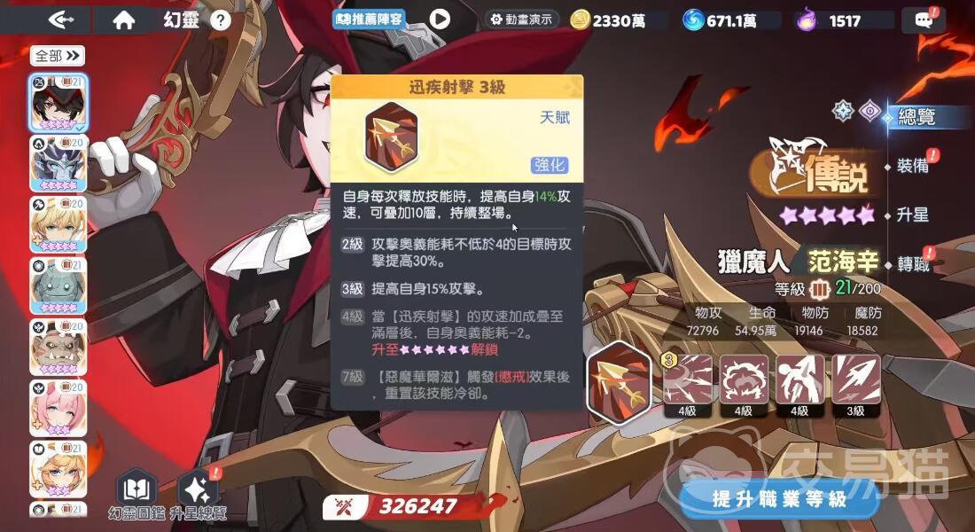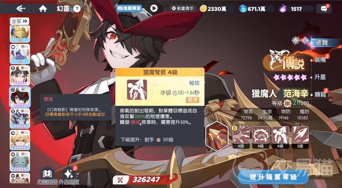 最佳组合:范海辛+奥术导师(高频奥义)+钢铁壁垒(群体降防)奥术导师每20秒释放的奥义技可为范海辛叠加1层唤醒,确保每场战斗至少触发3次额外恶魔弩箭(380%×3=1140%单体伤害)钢铁壁垒的“碎甲怒吼”群体降防40%,与范海辛手雷叠加后形成70%物防削减,使恶魔华尔兹对坦克单位的伤害提升300%。