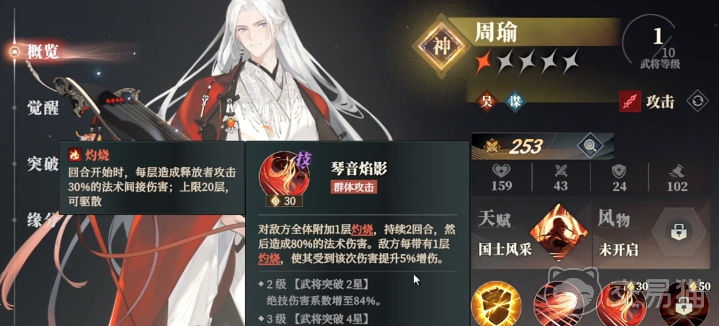 核心输出上,玩家至少也是要有两个谋士,比如陆逊、李儒,同时提供火伤与毒伤,利用“增伤联动”机制,主要就是火伤提升毒伤的命中率,同时毒伤的效果也可去延长火伤的持续时间,到时候还可搭配周泰来分摊伤害,同时提供了不错的复活效果,能进一步提升队伍的生存能力,诸葛果也是可以考虑的,能提供群体护盾、自愈与反伤,增强前排坦度,防止被爆发秒杀等情况的发生。