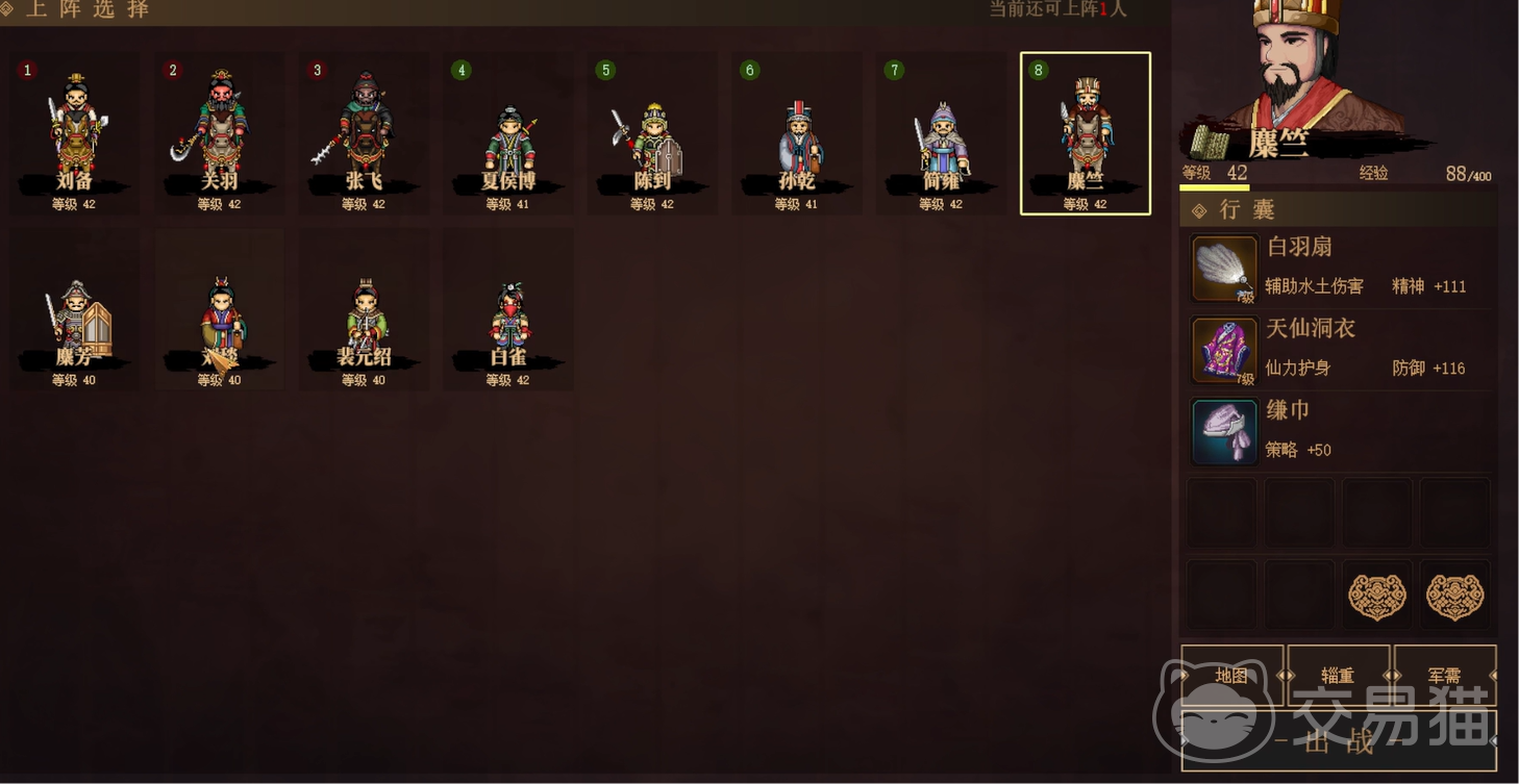 在阵容方面的话,首先推荐刘关张三兄弟,速度又快实力又强。至于其他武将的话,就可以选择夏侯博+陈到+孙乾+简雍+糜竺了,它们都是很强的角色,有些可以为队伍增加各个buff,有的则可带来强悍无匹的战力。