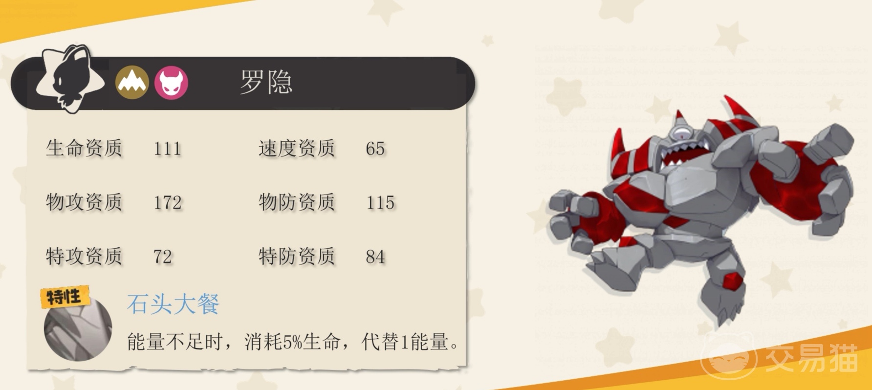 推荐三:罗隐,它是由阿米亚特进化而来的精灵,在进化之后,发生了极大变化,拥有了十分强悍的实力,罗隐拥有能够在能量不足时消耗自身生命值代替能量的特性。它的物攻目前算是游戏里天花板级别的,实战效果十分惊艳。