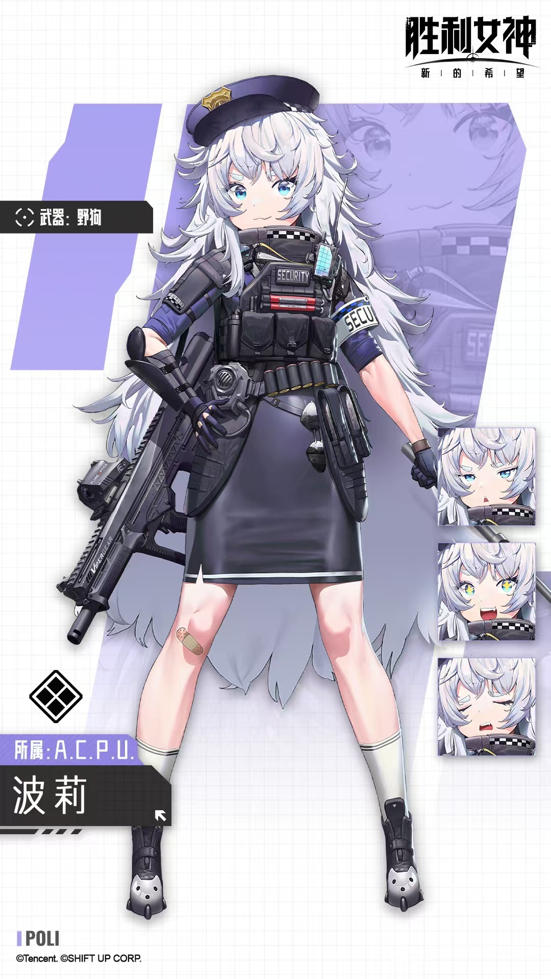 波莉在游戏中定位为防御型,使用的武器是霰弹枪,最大装弹数9发,换弹时间1.5,操作类型为普通型。在背景故事中属于极乐净土企业,A.C.P.U部队。主要特点包括攻击力提升,分摊被击伤害,防御力提升,护盾等。第一个技能无畏感召,普通攻击5次时,全体队友攻击力提升5.46%,持续10秒。