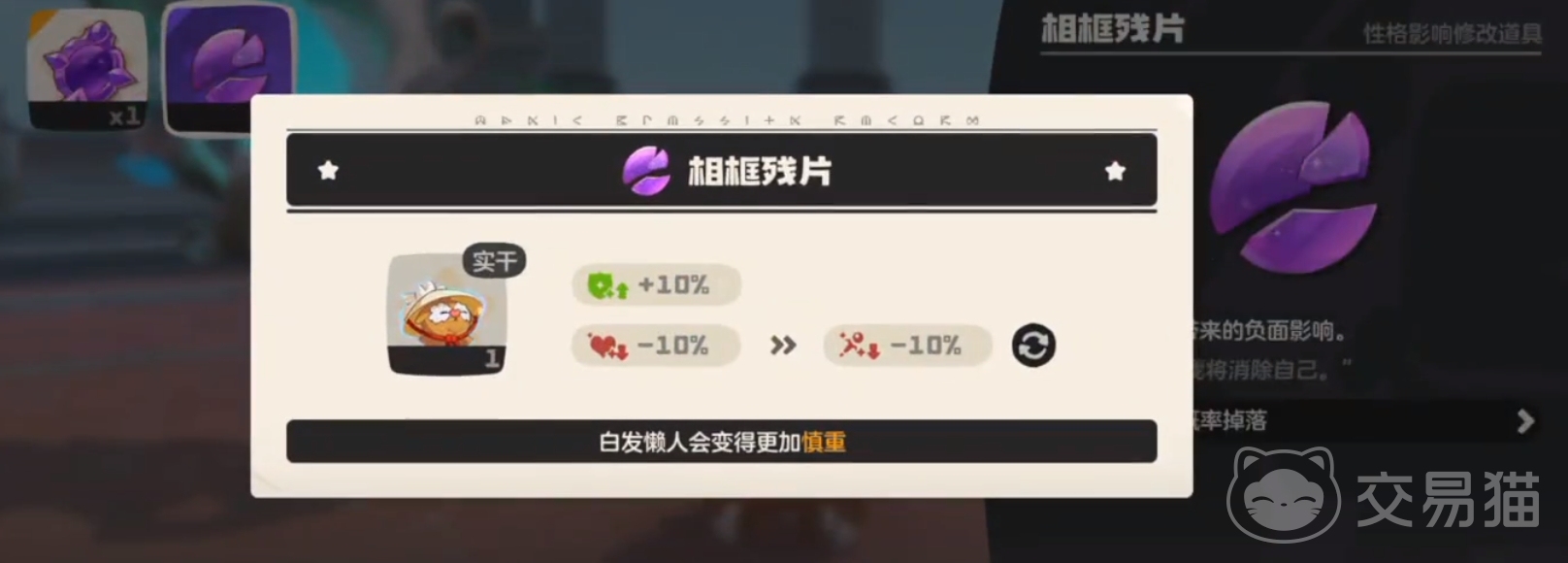 好了,以上便是洛克王国世界性格相框的全部内容了,说白了它的作用便是用于去调整性格,让其属性分配更为完美的道具,更是能让各位到时的战斗能力变得更加强悍,适用于pvp以及pve等多种不同的场景,喜欢就抓紧去试试吧。