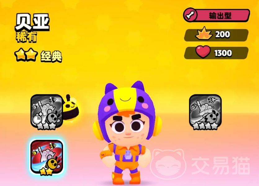 贝亚能召唤蜜蜂来进攻,适合喜欢在外围远距离试探的玩家,他的初始能力是在拾取蜂巢时,能得到2只小蜜蜂,蜜蜂会造成75点的伤害,总共会在生产存在90秒,2星会让蜂巢额外多提供一只蜜蜂,3星会让蜜蜂持续时间大幅延长,变为240秒,4星则让蜜蜂们的速度提升。