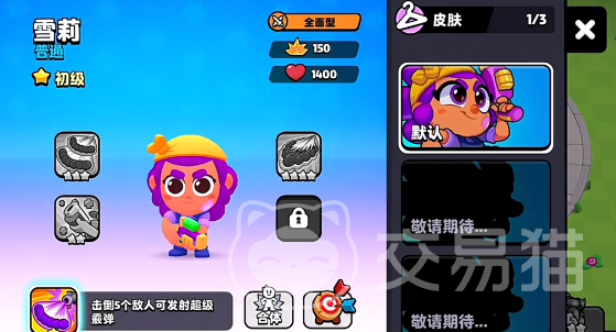 雪莉是全面型,集伤害、控制和回复为一身,非常适合开局选择,她的初始能力是在击倒5个敌人后会发射一次超级子弹,超级子弹能造成200伤害并将敌人给击退,2星会在发射子弹后帮助回复生命值,3星会让普攻发射出2发子弹,4星会让超级子弹的总伤害提升到400,速度提升29%,射程提升20%,并且可以把敌人眩晕1秒。