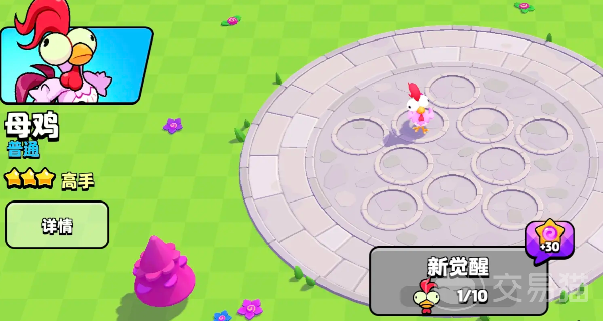 母鸡是敏捷型,它虽然看着瘦弱,但却能让队伍靠着速度取胜,他的初始能力是提供2个疾速,让队伍速度更快,2星时会每10秒生成一个鸡仔帮助进攻,3星会让疾速的提供数量变成3个,三星会在疾速状态时,能每2秒生成一个鸡仔。