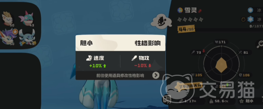 性格天赋选择上面,比较推荐只要是能加速速度的就可以了,比如说“胆小”,不需要太关注其他方面的属性,因为本身也不靠雪灵去打伤害,最好是能减少攻击力的性格,这样几乎就没负面影响了。天分方面也是优先增加速度资质的,其它的推荐生命和防御。