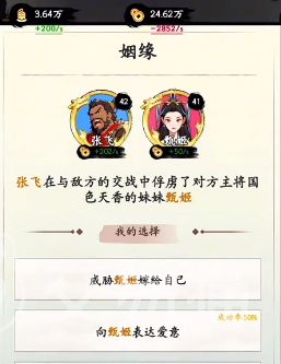 步入后续阶段,核心任务将聚焦于家族产业的拓展与城池的妥善经营。通过这两方面的稳步推进,不仅能够逐步增强家族的综合实力,提升其在各方势力中的影响力,还能在无形中加深与张飞之间的情谊纽带,使彼此关系更为紧密稳固。待正式结为连理和携手步入婚姻生活后,便会自然迎来孕育新生命的契机,若时机与缘分相合,更有可能喜得麟儿,为家族增添新的生机与希望。