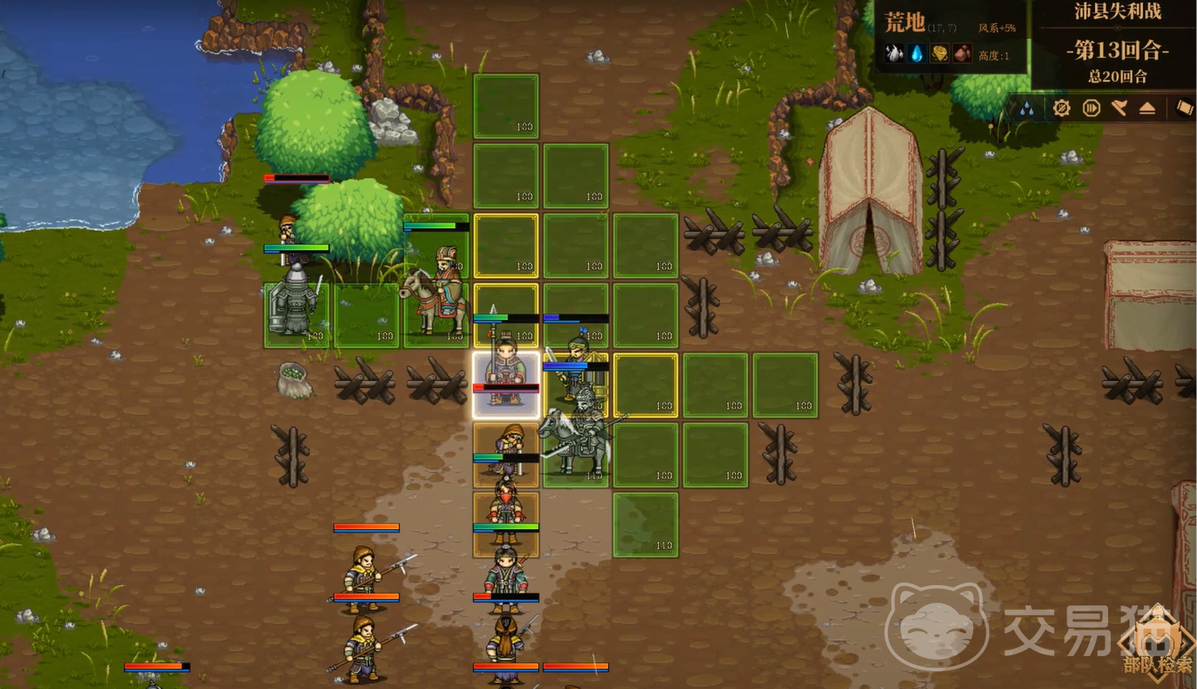 由于这个地图采用了横长的地形,所以大家的发挥空间就大了,不需要将角色分散开来。想要获胜的话,就需要击退所有人,然后保证将领没有任何一人阵亡,并且在20个回合内结束游戏。不过建议先看一下整体的地形,这样才方便安排将士。