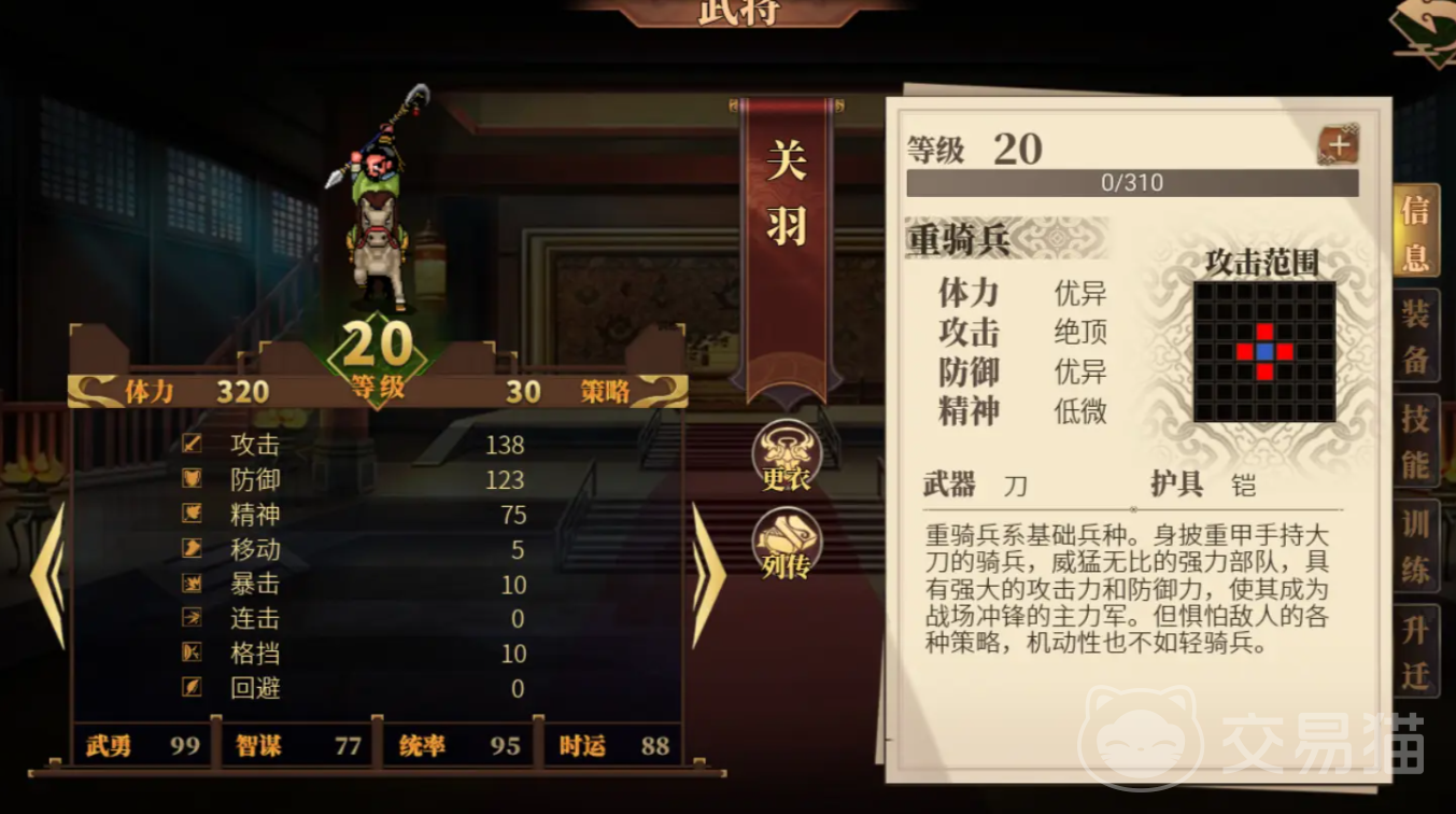以上就是关于关羽的转职介绍的全部内容了,相信大家通过小编的介绍可以更充分的放大关羽的优势,帮助大家在游戏中获得更高的主动性。因此,感兴趣的玩家抓紧按照小编的建议在游戏中进行转职操作吧!