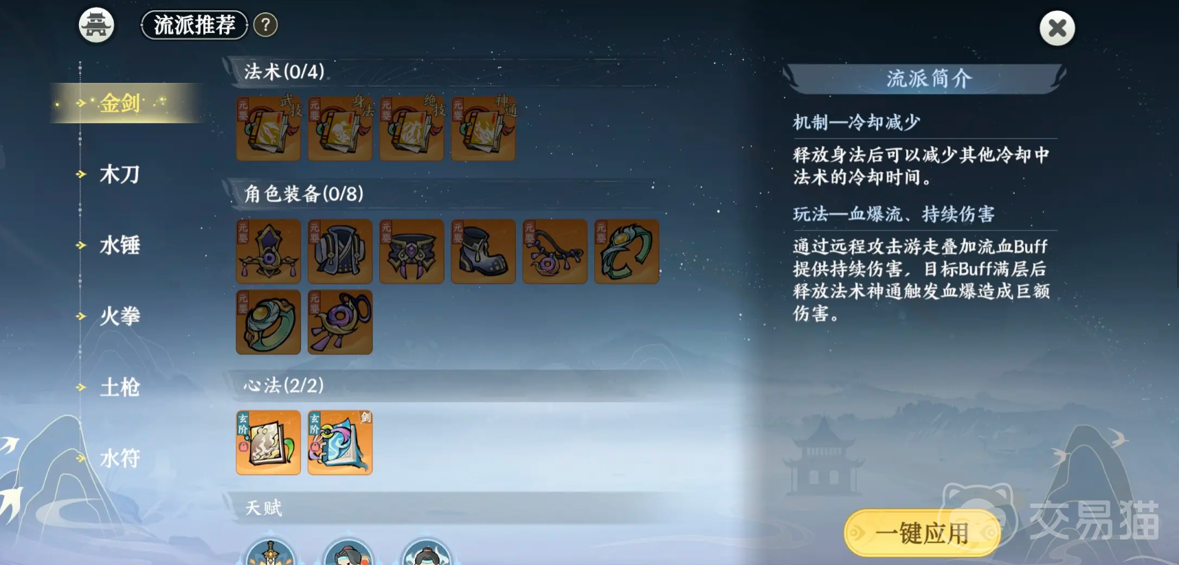 其次推荐金剑流,爆发型的流派,拥有高暴击穿透效果,搭配技能天仁决,外加万剑陨落,能瞬间秒杀很多经营怪物,在PVP当中拥有非常强的远程拉扯能力;操作的上限比较高,技术好的伙伴可以很好的秀出自己的操作。