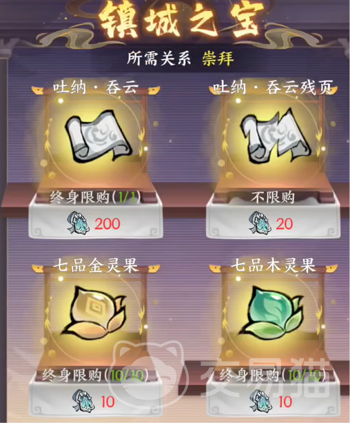 另外在这购买物品的话,需要与老板建立起良好的好感度,刚开始时是冷淡,但是依旧可以购买这些物品。不过要是想要购买镇店之宝的话,那就需要建立起崇拜的关系才行了。建立关系很简单,只需要频繁购买即可,之后就能在这买到各种七品灵丹。