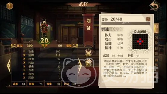 刘备自然是必练的,游戏里的核心角色,他的群雄身份固定,不能进行转职,但是可以优先练这个角色,攻击和防御能力都比较均衡,在选择合适武器,比如铁鞭之后,综合战斗力十分的可观。