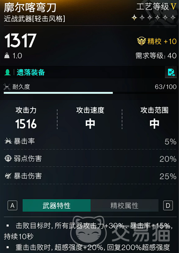 副武器推荐大家用廓尔喀弯刀,作为一柄轻击风格的近战武器,重击砍碎冰块的效果,可以给大家带来30%的易伤效果,进一步增加静默归途的输出伤害。另外还能提升20%的超感,更加容易打出碎冰等元素伤害。