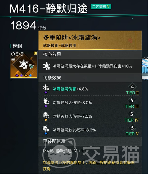 多重陷阱的话,这个模组可以让冰霜漩涡存在加一,可以同时存在三个漩涡。主要能让冰霜漩涡伤害加10%,主要是这个冰霜漩涡伤害,可以让冰晶和飞弹,全部可以吃到它的伤害加成,这样输出就能拉到最大。