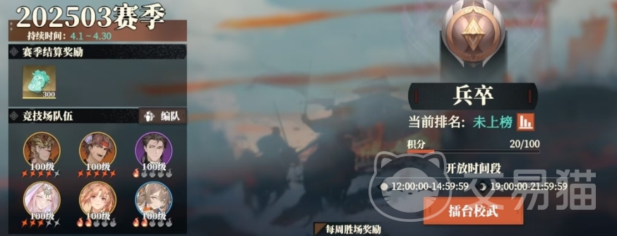 而校武场则不同,它支持玩家手动进行操作,当然也是可以开启自动模式的,但无法直接跳过战斗,所以非常考验大家操作技巧,校武场是采用赛季的模式来进行的,不过这个活动可不像有些全天开放的活动那样随时都能参与,它有特定的开放时间段,分别是12:00~14:59:59以及19:00~21:59:59,所以大家一定要看好时间,千万别错过了。