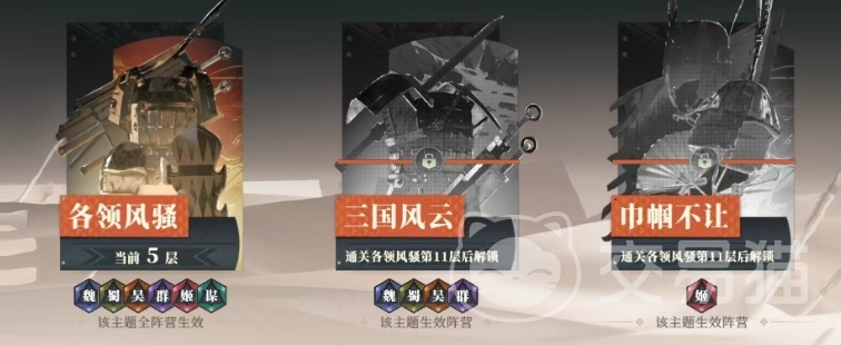 兵械库这边则是要不断地往上推进层数,这里有个需要注意的地方,不同的主题往往会有不同的阵营要求,所以在挑战的时候,一定要仔细看清楚要求,而星渊阁属于组队玩法,要是能够集齐4个光环的话,那可就能获得额外的加成效果了,历战属于单人活动,在挑战的时候需要根据挑战目标的特点来选择合适的武将,比如说当下开放的是王匡这个挑战目标,他会召唤出好多小弟,面对这种情况,就比较推荐带上具有群体伤害能力的武将去战斗了。