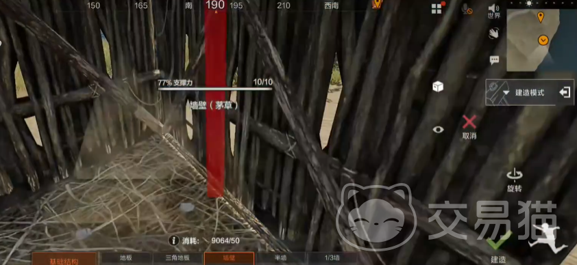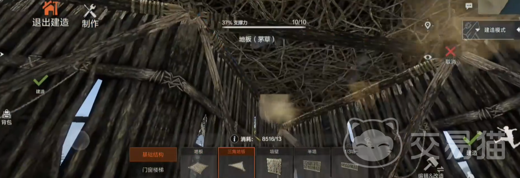 想要打造建筑,首先就是要采集足够的木材资源,接下来就可以点击左上角的建造,建造的按键是可以调整的,初次进入一般是在左侧靠中间的位置,点击之后,此时就会跳转到建造模式,左侧就是基础结构的选择,右侧有编辑,改造,以及建造等的按键,右侧的上方就是一个建造模式的选择,将这些建造的基础情况熟悉之后,就可以着手开始打造建筑了。