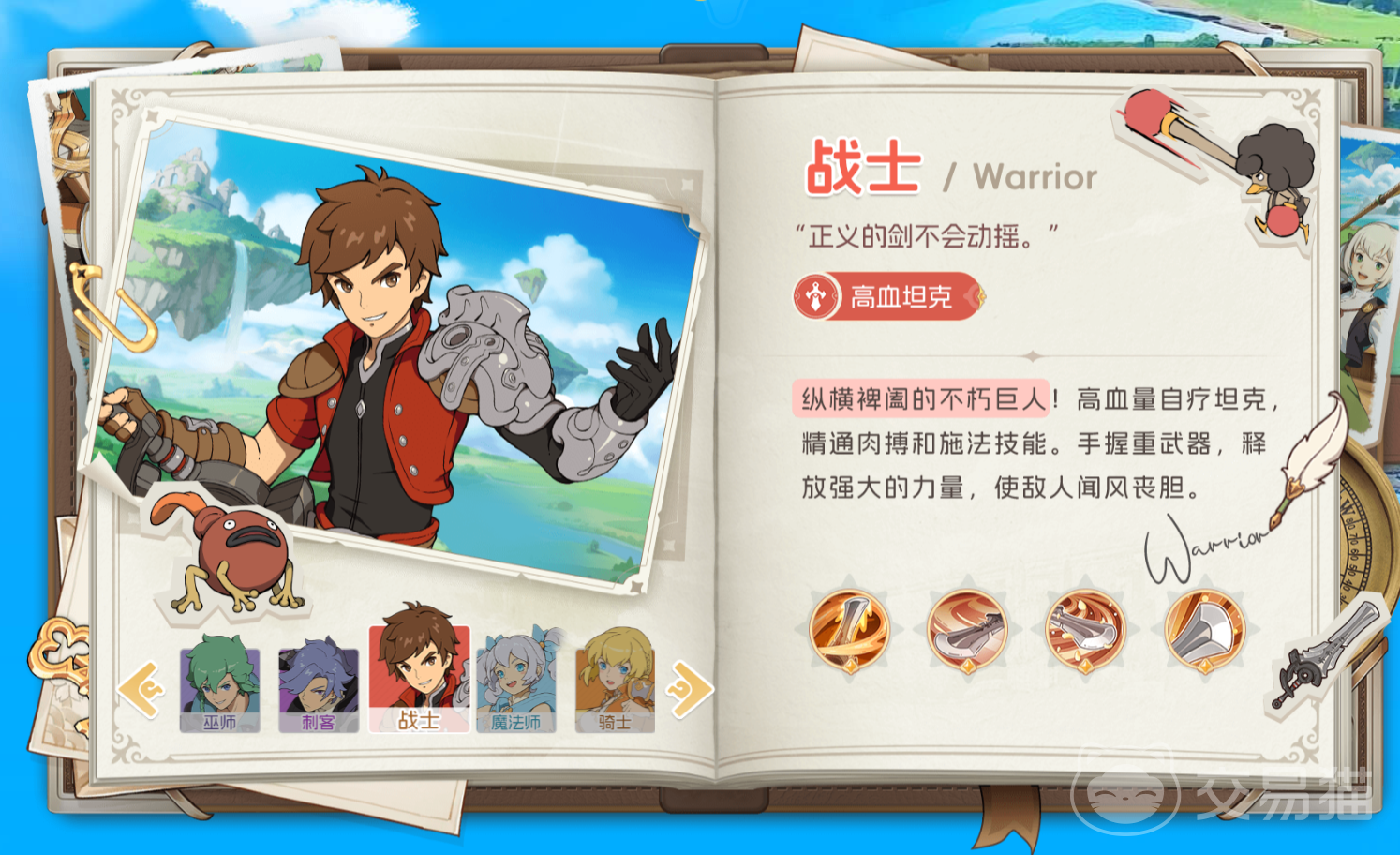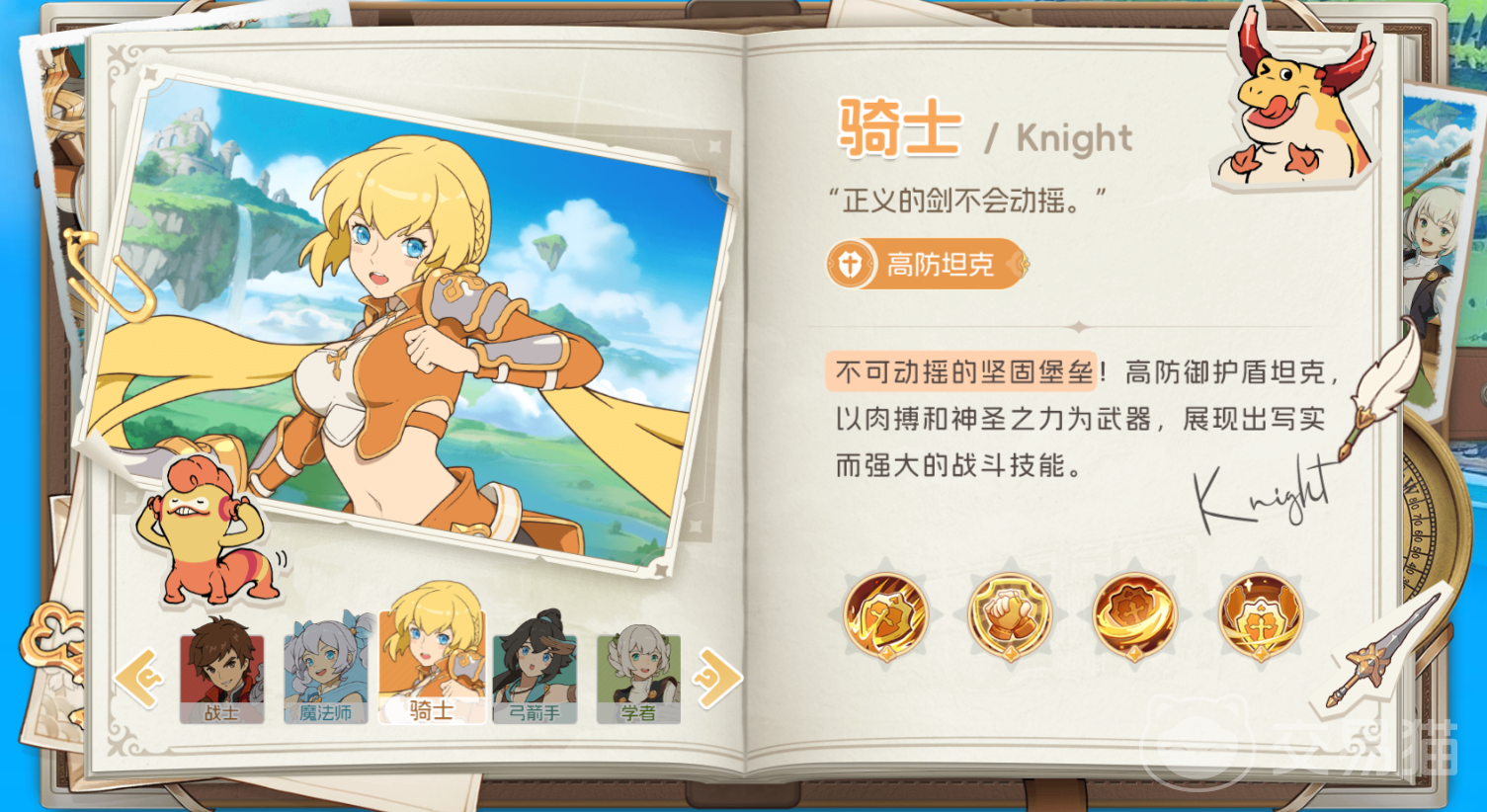 当然了,作为游戏攻略,小编自然会在这篇文章中先对各类职业做一个简单的介绍,帮助大家建立初步概念。首先为大家介绍的是坦克大类的职业:骑士和战士两个职业共同担任起坦克的职责。其中“骑士”以高防御和群体嘲讽能力见长,在实际的战斗中能有效吸引敌人的火力,然后为队友创造出一个安全又稳定的输出环境,是团队坚实的前排壁垒;“战士”则是具备着高血量和自愈的强力能力。因此该职业可以凭借高血量和自我回复这两个定级续航的能力,保证在战斗中能够吸收伤害的同时,也具备一定输出,可作为队伍中的副坦或输出补充。