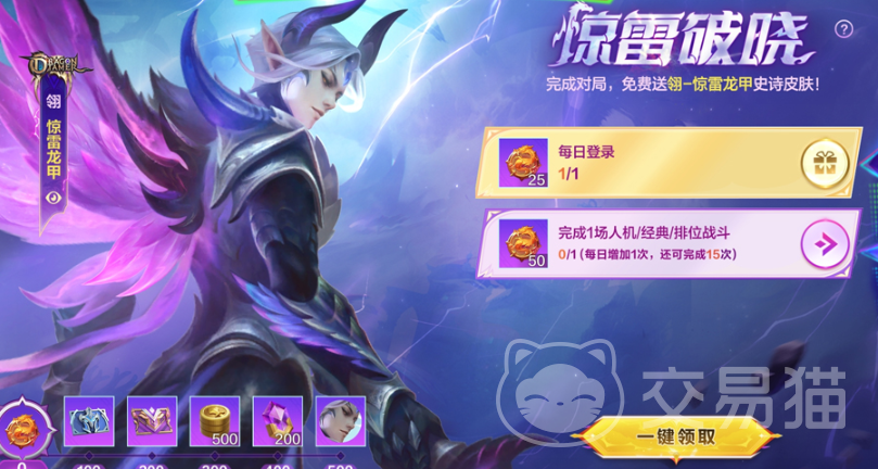 本次五一将会开启活动惊雷破晓。玩家们参与这个活动的话则是可以免费的领取翎的全新史诗皮肤惊雷龙甲。这个活动里面有不少的任务,玩家们只要完成任务便可以获取到奖励。在活动结束之后此皮肤将会正式上架商城。
