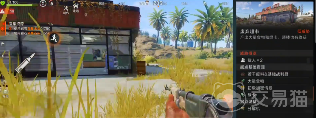 光是这些还不够,收集足够的物资,才能帮助自己更好的生存下去。首先可以考虑去搜刮仓库,虽然这里的物资比较少,但是也不容错过,一般都分布在货架,还有地面上,基本都是一些基础的战利品以及废料。其次考虑废弃超市,这里一般设置的敌人就两个,比较好解决,这里不仅有基础的战利品,还有大量的食物,能很好的环节饥饿的问题,并且可以搜刮到绿卡,分解机之类的资源。最后是灯塔,灯塔的每一层都分布有物资,而且会有绿卡,分解机之类的重点资源存在。