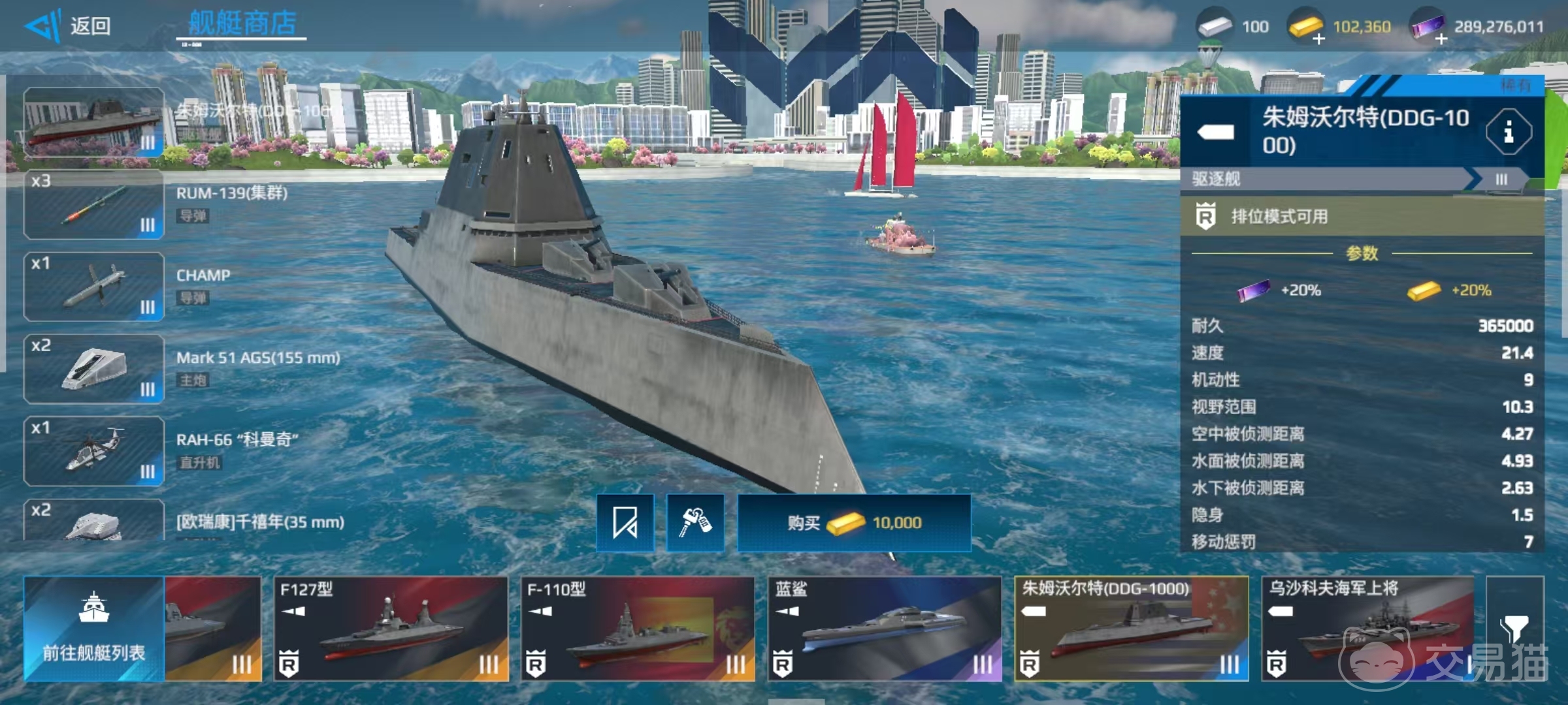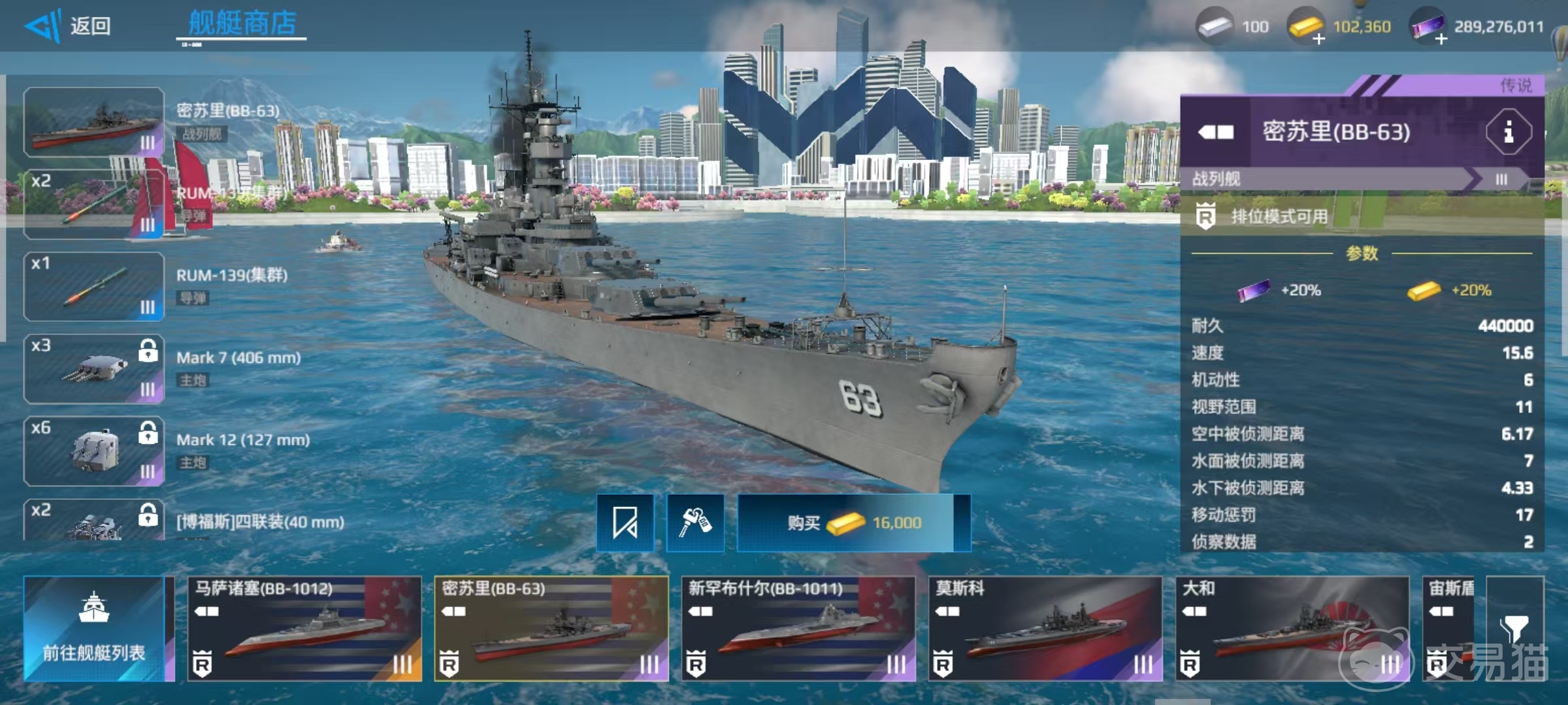 第3艘是朱姆沃尔特驱逐舰,拥有着游戏排名前列的雷达探测能力,利用好自身的隐身性,绕后去偷袭对方的脆皮,输出效率高。依靠携带的鱼鹰直升机,实现出色的反潜能力,操作的时候要手动切换防控目标,这一点比较考验操作。第4艘是密苏里战列舰,拥有射程非常远的主炮,火箭炮能够跨山进行反潜,虽然血量高,但机动性较差,防空使用的是手动炮,需要优先去拦截对方的战斗机和导弹,适合在开阔地图中远程进行压制。