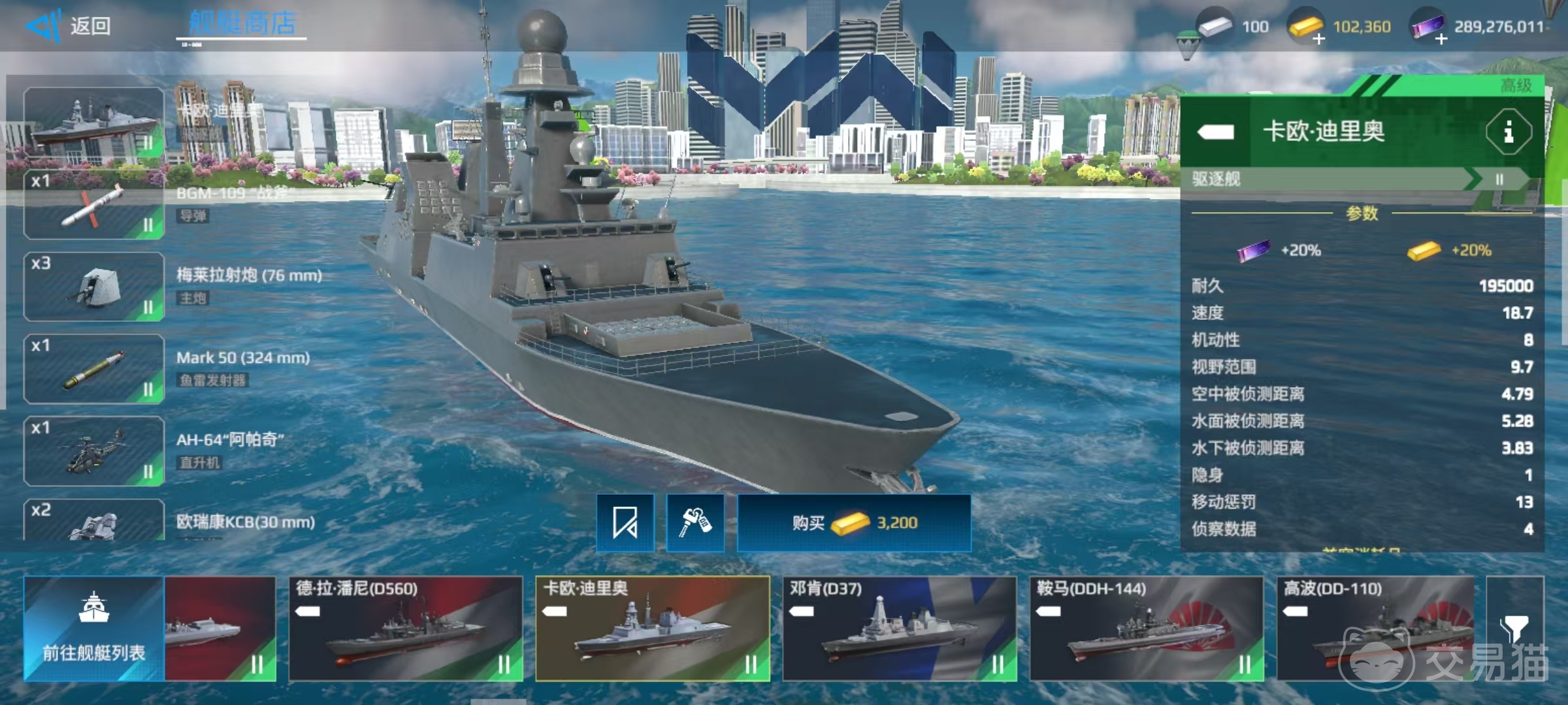 小编推荐的这些船只是目前的热门选项,并没有排名先后的区别,都是很适合选择的一类。首先是卡欧迪里奥驱逐舰,该舰属于二级类型,在二级房中拥有着绝对的统治地位,适合玩家在前期利用人机局快速去刷经济,在真人局中打辅助输出也是可以的,操作非常简单,开局之后直接卡在山体后面输出。缺点在于反潜能力比较弱,遇到潜艇时较难应对。