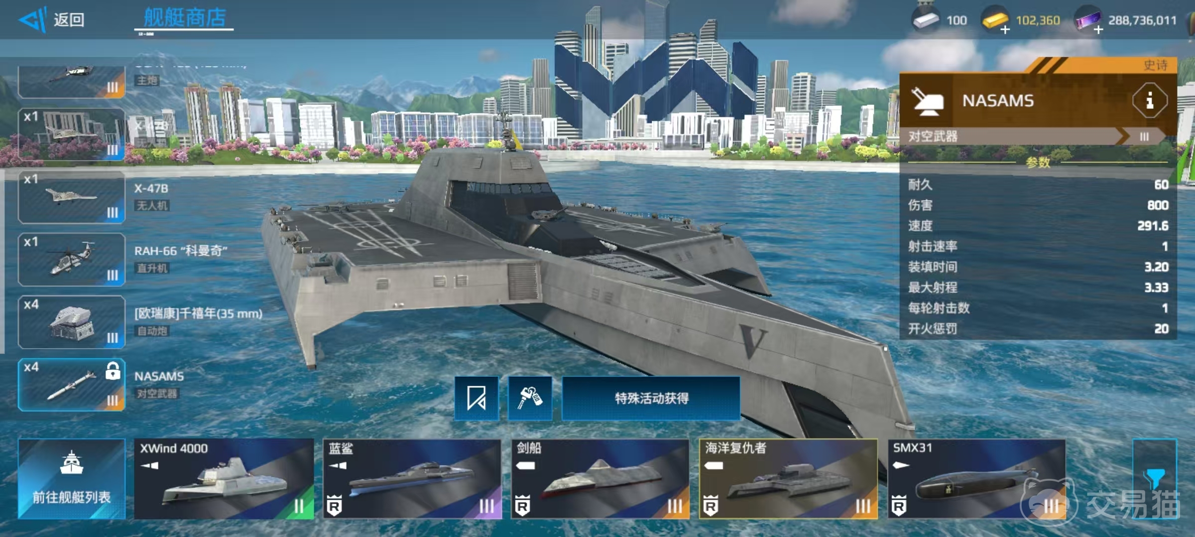 自身武器中除了OCAV120毫米口径主炮是和对空武器NASAMS是锁定的之外,其他都可更换。锁定的防空武器用于拦截导弹,千禧年近防炮则可以用于防御飞机。自身携带的X-47B无人机单轮伤害非常高,再加上有科曼奇直升机的协助,反潜和侦察力极为优秀。后续在进行升级的时候,应该优先将x-4gb无人机升到较高品质丹阳能够提升伤害。