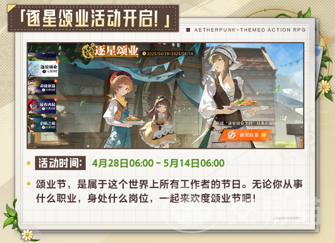 五一假期到了,各位冒险者们,是时候为你们辛勤的工作加点料了!今天小编就带来晶核五一活动介绍。这次晶核为大家准备了超多丰厚的奖励活动,让每一位玩家都能感受到这个劳动节的特殊气氛——不论你是铁杆玩家,还是刚刚入坑的小白,都能在这些活动中收获属于自己的荣耀与奖励。下面就带大家一起来看看这次的「逐星颂业」系列活动吧。