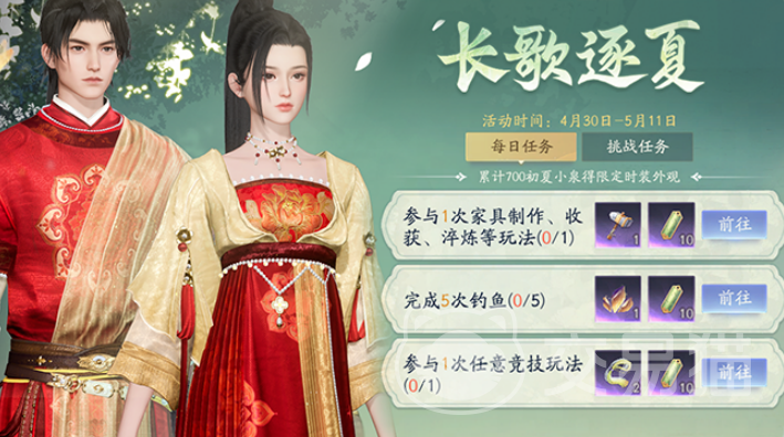 接下来是“长歌逐夏”,这项活动将持续到5月11日。只要达到30级并完成任务,就可以领取限定时装“长安歌”以及珍贵的寻武令。对于喜欢个性化装扮的玩家来说,拥有这样一套限定时装,肯定会让你在人群中独领风骚,成为全场焦点。