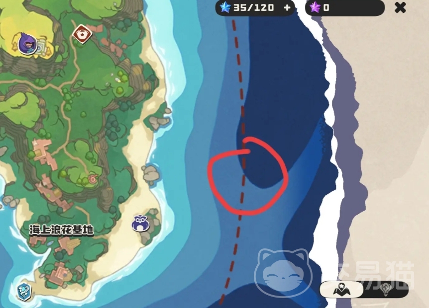如果任务都做的差不多了,没有找到水母的话,可以根据下图中的位置前去寻找,这里刷新水母的概率是比较大的,如果去的时候没有大家可以多刷新几次,不过要大家的是只有晚上才刷的到。