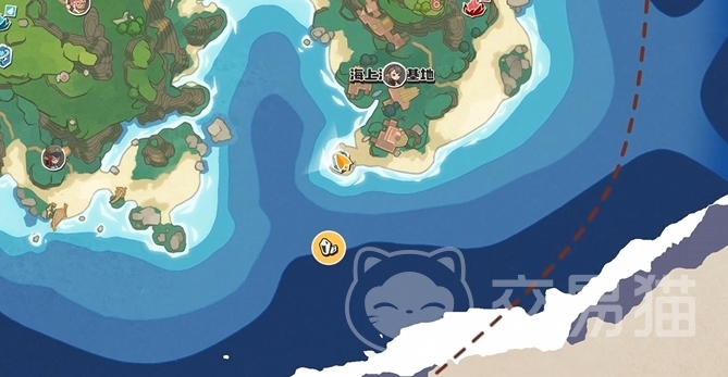除了靠近右边海域的位置之外,在左下角的海域大家也可以去刷新,传送到这个地方附近之后往海里游泳,靠近坐标地点,如果大家有水系的坐骑精灵的话,在这里是可以用的,行动速度会提升很多。