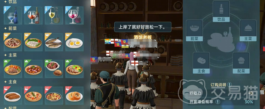 第三个方式就是通过料理,可以吃一些食物来回复部分的体力。接下来讲解一个重点的方法,那就是通过酒馆里的宴请功能,跟酒馆的老板喝酒对话后,会出现宴请的菜单,使用宴请功能需要消耗大餐券,或者是非绑钻的方式回复,游戏初期赠送的大餐券就可以在任意的酒馆里面使用。