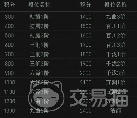 天下会武作为排位玩法,可以和全服的玩家一起对战,每次胜利能得到段位积分,累积到一定段位积分后可以提升到更高的段位,这段位也就代表了大家在其中的水平,具体的段位详情大家可以参考下图。