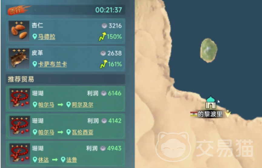 在游戏中,每个地区的特产是不一样的,玩家到了特定的港口,了解这个地方的流行商品,通过贸易也能够获得利润,另外在航海的时候,玩家需要使用导航来探索未知海域。