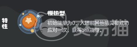 它的特性为慢热型,初始能量为0。该特性需要队友在战斗中通过击败敌方、解除控制或触发闪避等行动为其积累能量,每次成功应对可提供5点能量,最高叠加至100点。能量满值后,瞌睡王入场时触发蓄力爆发效果,大幅提升物攻与暴击率,定位偏向收割型输出角色,依赖队友铺垫实现爆发。