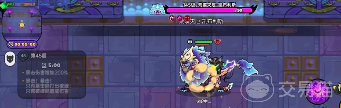 在意志之塔的第45层,你将面对BOSS荒漠灾厄.凯布利斯,他是一个以火属性攻击为主的敌人。凯布利斯的血量非常高,达到30万,攻击力为1000,且他的移动速度为250,属于典型的高输出型BOSS。尽管他拥有高血量和强大的火焰攻击,凯布利斯的防御却有所短板,尤其是对冰属性和雷属性的抗性非常低,分别只有100。