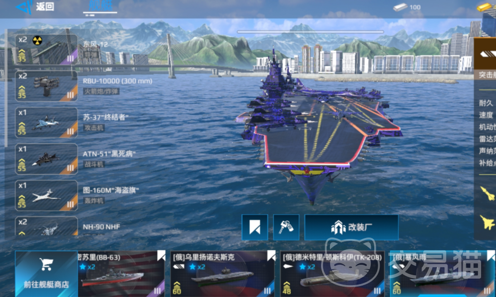《现代战舰》中的暴风号航母可灵活选择搭载武器。你既可以让它主动携带16枚P - 700反舰导弹,凭借其强大的反舰能力在海战中给敌方舰艇致命一击;也能选用SS-N-22“日炙”反舰导弹,其高速突防的特性让对手防不胜防。除此之外,暴风号还装备了SUW-N-1“牛虻”防空导弹,构建起坚实的防空屏障,有效抵御敌方空中力量的袭击;同时搭载RBU-6000火箭深弹发射器,能对敌方潜艇形成有力威慑。